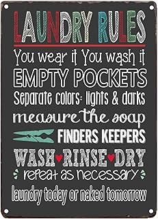 PXIYOU ランドリー ルール タイポグラフィ 洗い流し ドライ ヴィンテージ アンティーク調 ファームハウス メタルサイン 洗面所 ランドリー ルーム装飾 8×12インチ