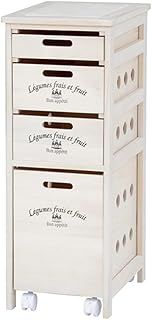 萩原 キッチンストッカー キッチンラック 野菜ストッカー キャスター付き 大容量 【すぐに使える完成品】 シンプル 木製 天然木 ホワイト白 MUD-6906WS