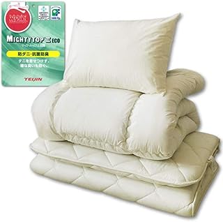 メーカー直販 帝人 防ダニ抗菌防臭わた入り なかわた増量 ボリューム組布団 日本製 3点セット(掛け布団150×210cm・敷き布団100×210cm・枕43×63cm) シングル アイボリー