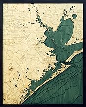 Houston / Galveston , Texas 3 - D Nautical木製チャート、24.5 " X 31 "
