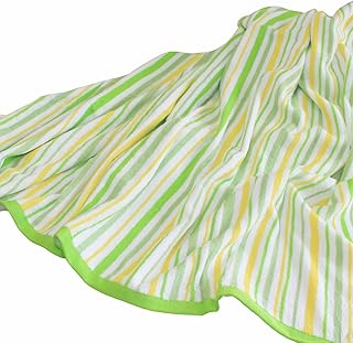 軽くて乾きやすい 綿 100% タオルケット ストライプ柄 ダブル サイズ グリーン(180×190cm)