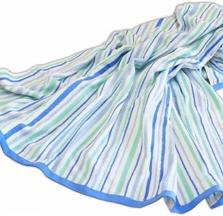 【乾きやすい】綿 100% タオルケット ストライプ柄 シングル サイズ ブルー(140×190cm)