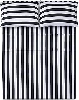 Best Season ベッドシーツセット 豪華でソフトなマイクロファイバー寝具 深いポケット付き 4点セット フル Best Season BS0001STBK/WIT-F