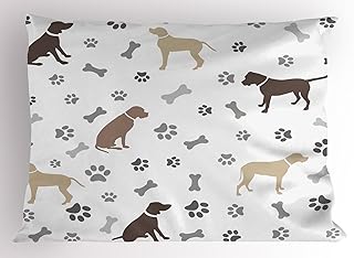 Dog Lover Pillow Sham by Ambesonne、足プリントボーン、犬シルエットAmerican Foxhound Breed遊び心パターン、装飾標準Kingサイズプリント枕カバー、Umberベージュグレー 36" W By 20" L pil_53419_36x20