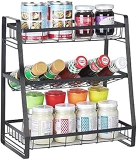 PINNIYOU スパイスラック 3段 取り外し可能 スパイス棚 キッチン カウンタートップ 棚 オーガナイザー (ブラック)