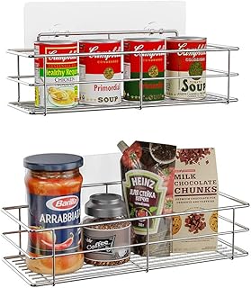 HOSUN 壁掛けスパイスラック 壁用 粘着スパイスオーガナイザー スパイス棚 キッチン用調味料オーガナイザー ドリル不要 ステンレススチールウォールラック (2個パック)