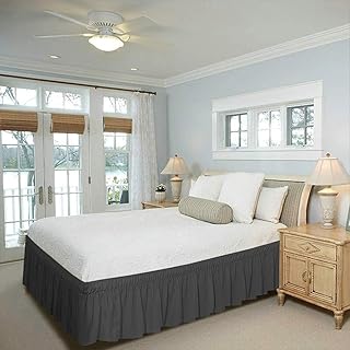 コットンメトリックリネン 800TC ホテル品質 100% エジプト綿 ダストラッフルベッドスカート 18インチドロップ クイーンサイズ ホワイトソリッド クイーン グレー GANESHJI118