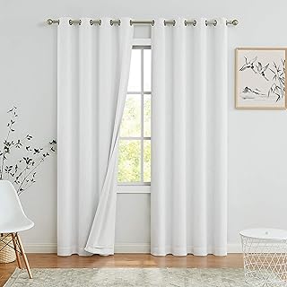 セントラルパーク ホワイトソリッド 100%遮光 窓用カーテン 寝室用 ノイズ低減 ドレープ ヘビーリネンテクスチャ 8グロメットトップ ホワイトライナー付き 50インチ x 108インチ 1枚