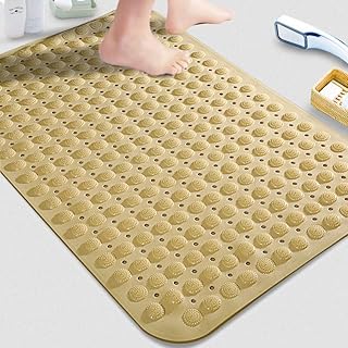 NKTM 浴槽すべり止めマット お風呂マット 吸盤バスマット 転倒防止 痛くない 吸盤付き 抗菌防カビ 天然ゴム製 洗濯機で洗える 70x40cm (ベージュ/米白色)
