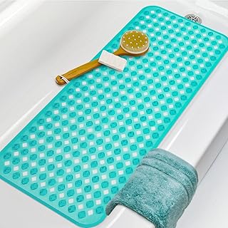 バスマット お風呂マット 足ふきマット すべり止めマット 浴槽用 吸盤つき 抗菌防カビ 100x40cm 転倒防止 介護用品 ブルー