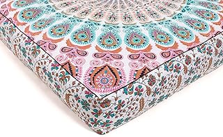 正方形 ヒッピー 曼荼羅 フロア ピロー オットマン プーフ カバー - インディアン クジャク デイベッド オーバーサイズ コットン クッションカバー ヘビーデューティー ジッパー シッティング オットマン 犬 - ペット ベッド カバー 22インチ マルチ