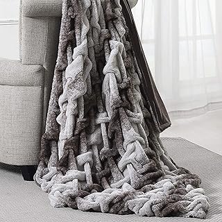 Amrapur Overseas フェイク ファー リバース フランネル オーバーサイズ 編組スロー 50インチ x 60インチ トープ色 5LXFXTHE-BRD-ST