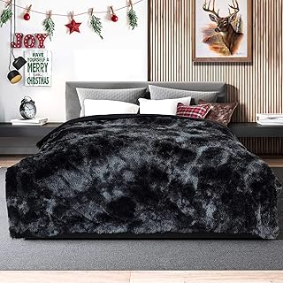 Lvylov 装飾ソフトふわふわフェイクファーブランケット フル/クイーンサイズ 90インチ x 90インチ リバーシブル シャギーコージーふわふわブランケット 大きくて快適なマイクロファイバーアクセント シックプラッシュふわふわベッドブランケット 通気性&洗濯可能 ブラックグレー