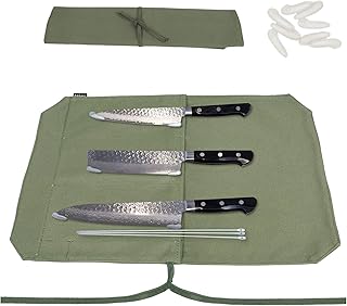 QEES ナイフロール カーキ シェフナイフロールケース ワックスキャンバスツールロール シェフナイフバッグ ホームキッチン 料理 トラベルツールロールポーチ ストレージ DD31