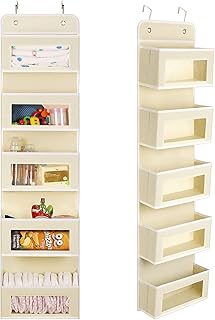 HASONA ウォールポケット ドア掛け 壁掛け 収納ポケット 5段 透明窓付き 頑丈 大容量 不織布 おむつ/タオル/入浴剤/おもちゃ/雑誌などの収納に最適 フック2個付き (ベージュ)