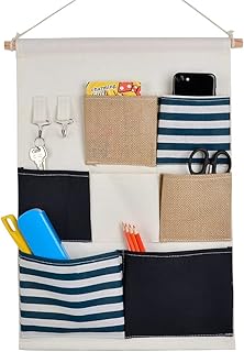 Idealeben ウォールポケット 壁掛け収納式 2つの金属フック付き 3段7P 壁掛け ポケット 小物入れ 省スペース 収納ポケット 綿麻