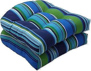 Pillow Perfect Outdoor | インドアシーアイランドブルーウィッカーシートクッション (2個セット) 19 X 19 X 5