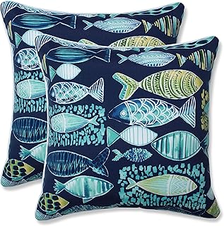 Pillow Perfect Outdoor | インドアラグアタイルプールスローピロー (2個セット) 18.5 X 18.5 X 5 ブルー