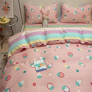 ガールズ ストロベリーグリッド 寝具セット ピンク クイーン 掛け布団カバー 100% コトン寝具 掛け布団カバー 3点セット 枕カバー2枚付き 子供 ティーンズ 大人 レインボー寝具 クイーン