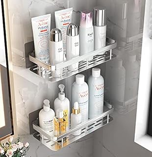 【強化版】シャンプーラック 浴室 ラック シャワーラック 強力粘着固定 壁に穴を開けない お風呂の壁に シャンプー置き 石鹸置き 錆びにくい アルミ合金 頑丈 水切り コーナーラック 小物整理 洗面所 お風呂 キッチン 壁掛け 収納ラック バス用品 負荷10kg (シルバー (2個入))