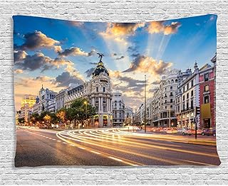 Chunxd ヨーロッパの街並みの装飾コレクション通りの眺めモダンなマドリードと空の風景大きな旧市街の部屋タペストリー -150X200Cm