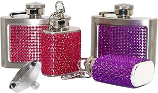ラインストーン-キーチェーン フラスコ-リカー レディース ステンレススチール 漏斗付き (2パック 2オンス + 2パック 1オンス)