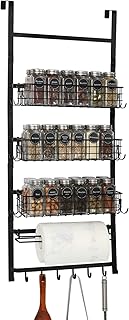 X-cosrack 3段スパイスラックオーガナイザー ドアパントリーオーガナイザーラック フックとナプキンホルダー付き 壁掛け 缶 スパイス 食品 クローゼット用 DIYキッチン バスルームディスプレイ棚