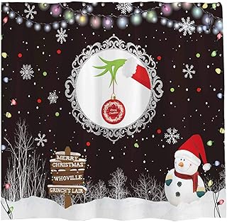 Allenjoy 72x72インチ 冬テーマ メリークリスマス シャワーカーテンセット フック12個付き 自然 雪 風景 雪だるま バスルームカーテン 耐久性 防水生地 浴槽セット ホームインテリア