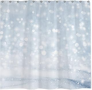 Allenjoy 72 x 72インチ 冬用シャワーカーテンセット フック12個付き シルバースパンコール ボケ 雪の結晶 キラキラ スノーフィールド バスルームカーテン 耐久性 防水生地 浴槽セット ホームインテリア