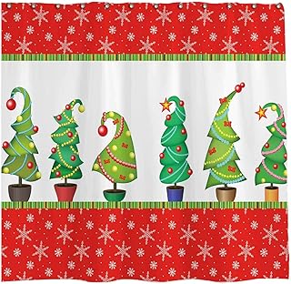 Allenjoy 72 x 72インチ 冬 クリスマス シャワーカーテンセット フック12個付き 赤と緑の松 装飾 木 白 雪の結晶 バスルーム カーテン 耐久性 防水 ファブリック 浴槽セット ホームインテリア