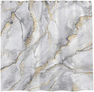 Allenjoy 72 x 72インチ 大理石シャワーカーテン ホワイトグレー 金色のひびの入ったラインパターンテクスチャ バスルームカーテン 耐久性 防水生地 浴槽セット ホームインテリア フック12個付き
