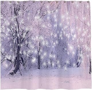 Allenjoy 72x72インチ 冬の雪景観シャワーカーテンセット フック12個付き クリスマス ワンダーランド 雪の結晶 ボケ グリッター 森 バスルームカーテン 耐久性 防水生地 浴槽セット ホームインテリア