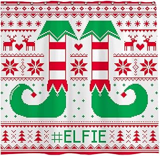 Allenjoy 72x72インチ 冬用シャワーカーテンセット フック12個付き レッド グリーン エルフの脚 靴 メリークリスマス バスルームカーテン 丈夫な防水生地 浴槽セット ホームインテリア