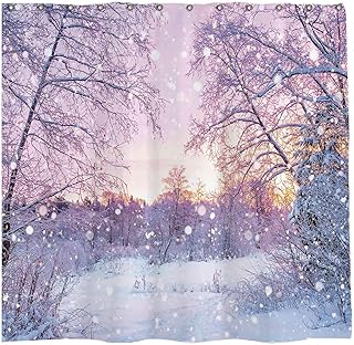 Allenjoy 72 x 72インチ 雪の森 シャワーカーテン バスルームセット 冬 クリスマス 月 雪だるま ホーム バスルーム 装飾 カスタマイズ可能 耐久性 防水生地 洗濯機洗い可能 カーテン フック12個付き
