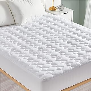 EcoMozz クイーンマットレスパッド 最大8~21インチまで伸縮 滑らかなゴムポケット (ノイズなし) プレミアムスノー代替ファイバーフィル保護パッド