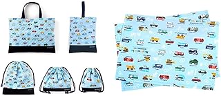 入園・入学5点セット キルティング (レッスンバッグQ/シューズケースQ/体操服袋/お弁当袋/コップ袋) アクセル全開はたらく車(ライトブルー) N8133200 & キッズ ランチョンマット スタンダード ナフキン 給食 アクセル全開はたらく車(ライトブルー) N3655100【セット買い】